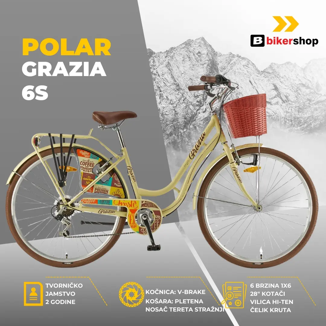 Polar Grazia 6s Beige je stvoren za one koji cijene estetiku prošlih vremena, ali žele pouzdanost moderne tehnologije. Ovaj “Dutch” stil bicikla osigurava ti uspravno i udobno sjedenje, čuvajući tvoja leđa dok elegantno kliziš kroz gradsku gužvu. Ako tražiš bicikl koji je istovremeno brz, stabilan i nevjerojatno cool, na pravom si mjestu! 😎